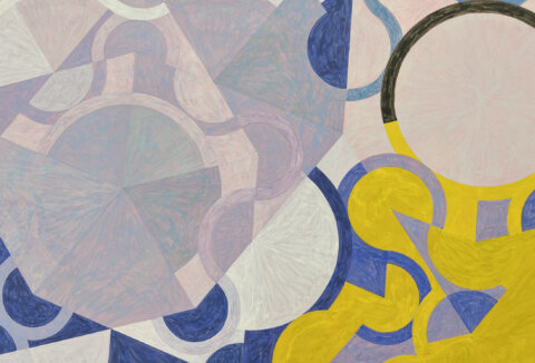 Egg tempera paintings by Eli Bornowsky depict fragments of procedural tessellations. Cropped into square dimensions, the geometric compositions could extend infinitely beyond the picture plane. For the artist, whose practice often draws on optical effects derived from mathematical systems, geometric operations are a way to problematize artistic self-expression, engaging instead with the physical manifestations of algorithmic logic. For instance, Bornowsky employs ‘space-filling curves’ and ‘random walk algorithms’ to determine the distribution of colour across tiles. Both describe the wandering path of a line: one continuous and exhaustive, the other partial and unpredictable. Within these parameters, Bornowsky’s brush follows similar trajectories—looping, meandering, and doubling back—revealing the restless motion of his constructed process. By merging geometric precision with intuitive improvisation, his paintings explore the knot of structure and chance, where each brushstroke translates mathematic procedures into laboured rhythm.