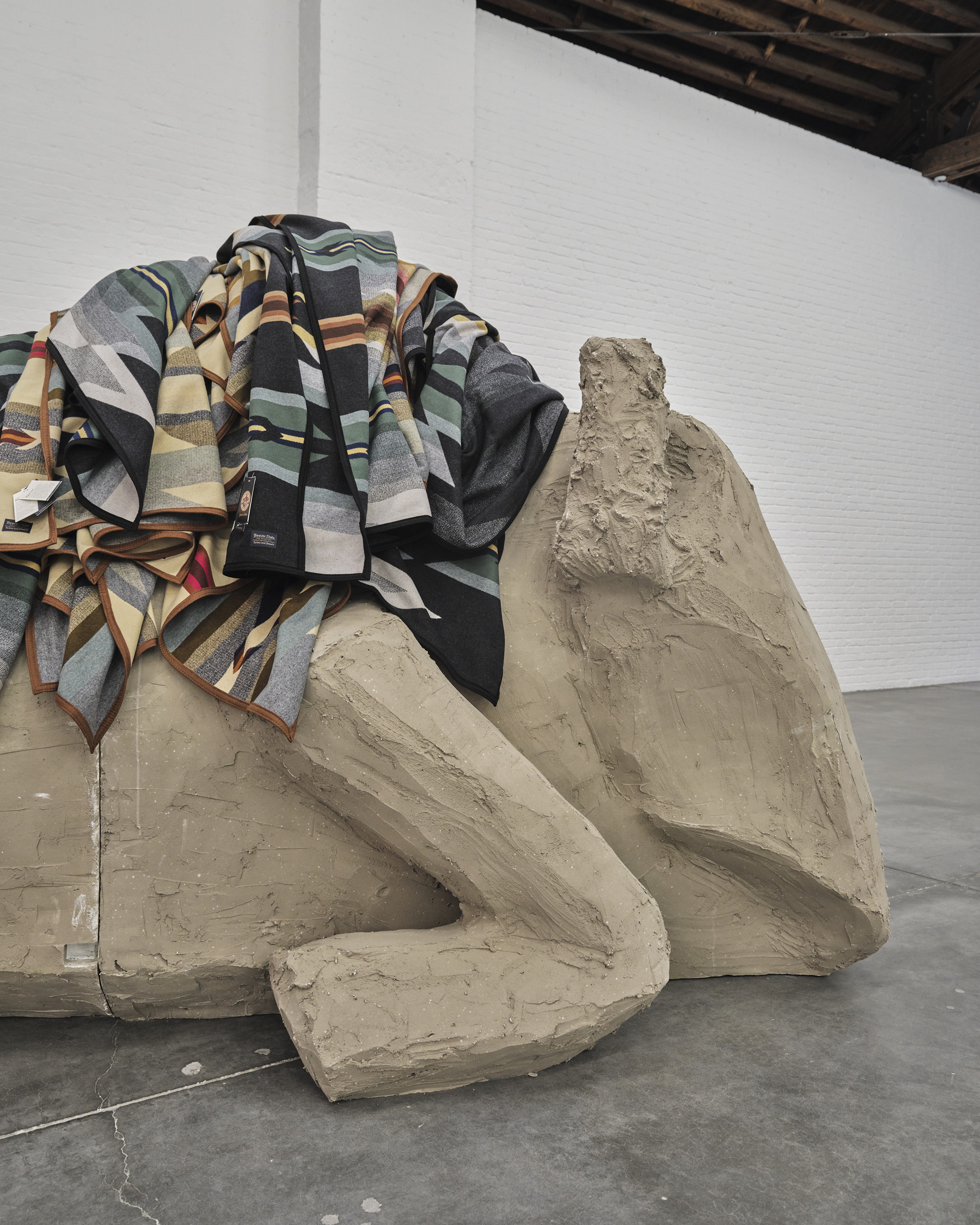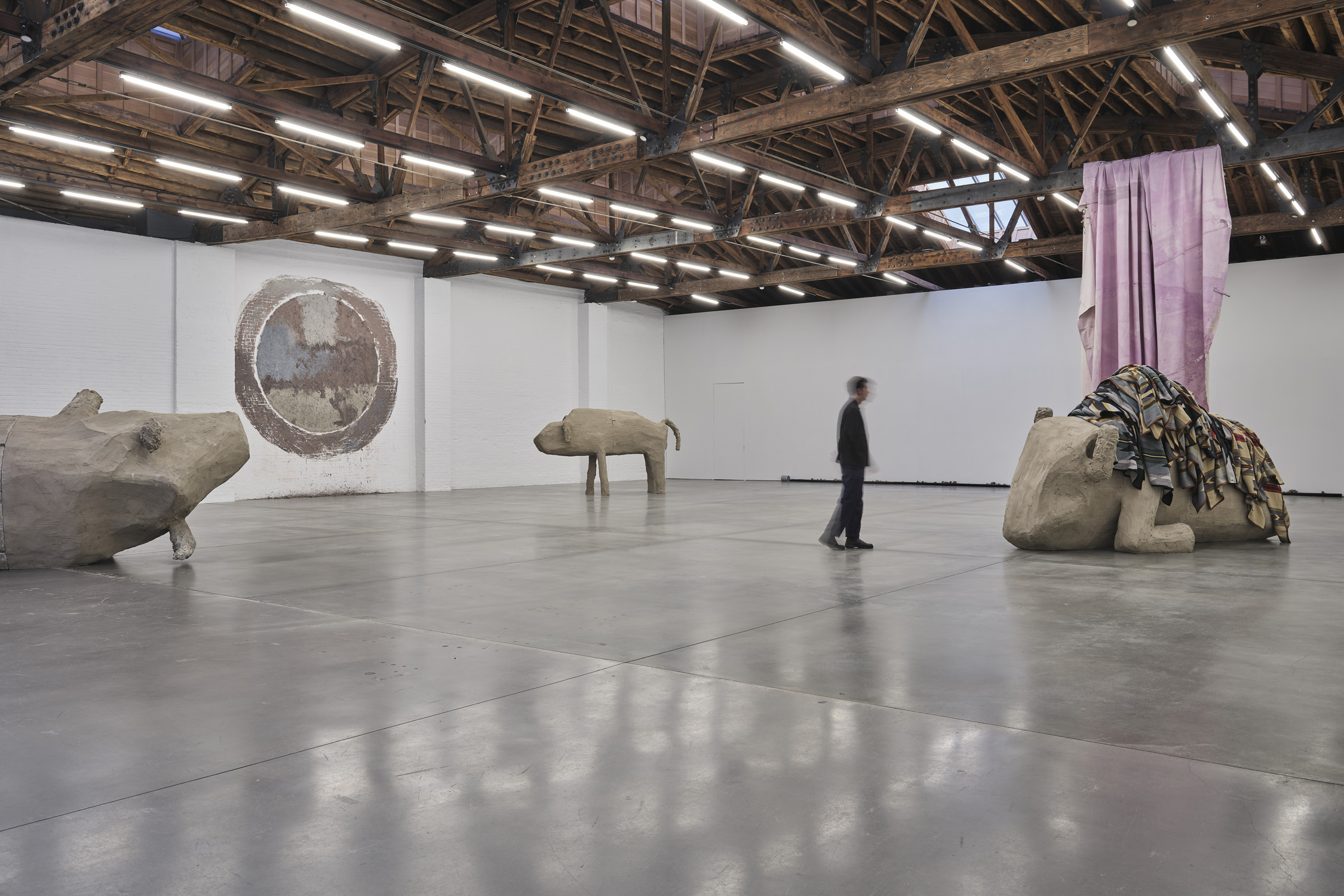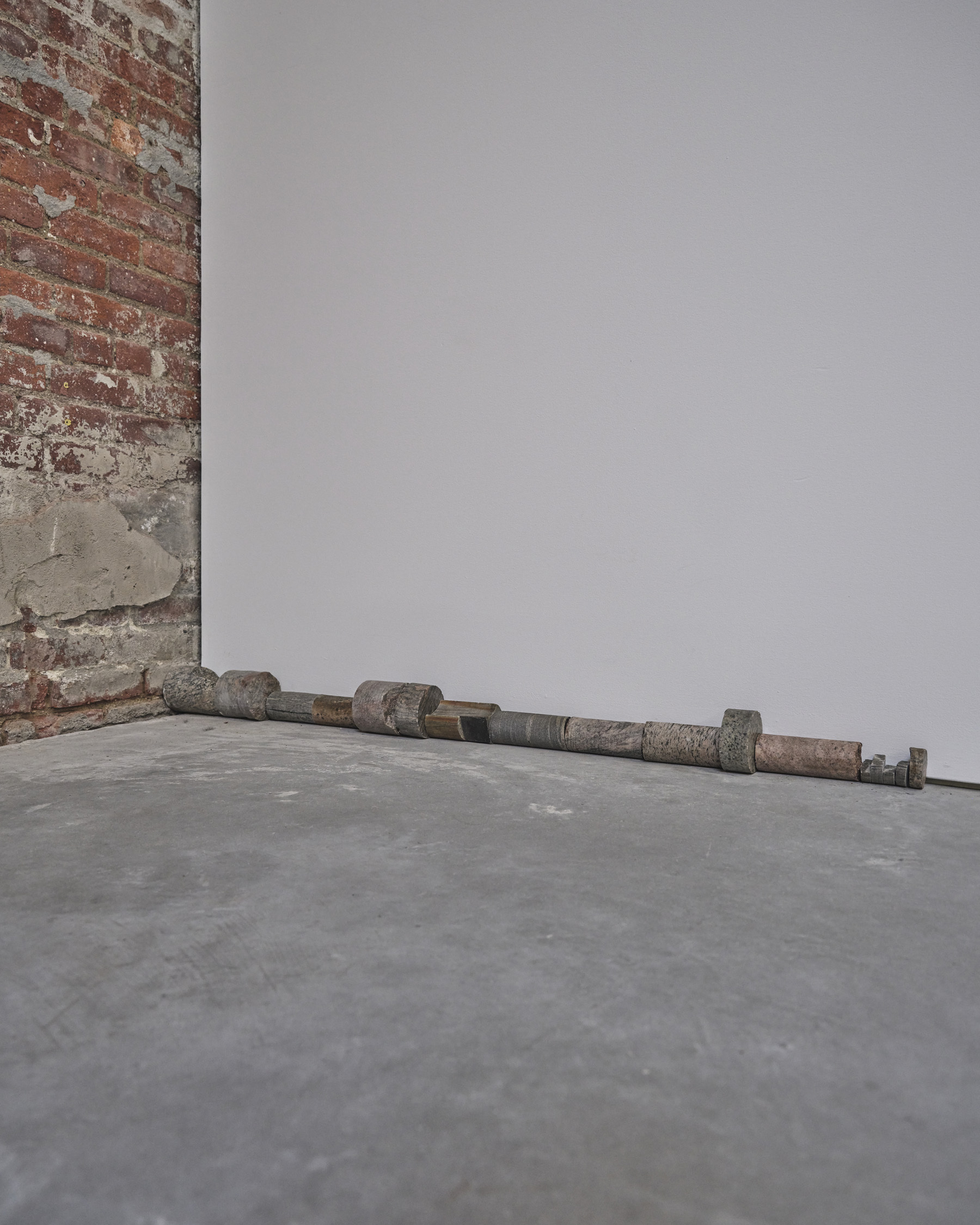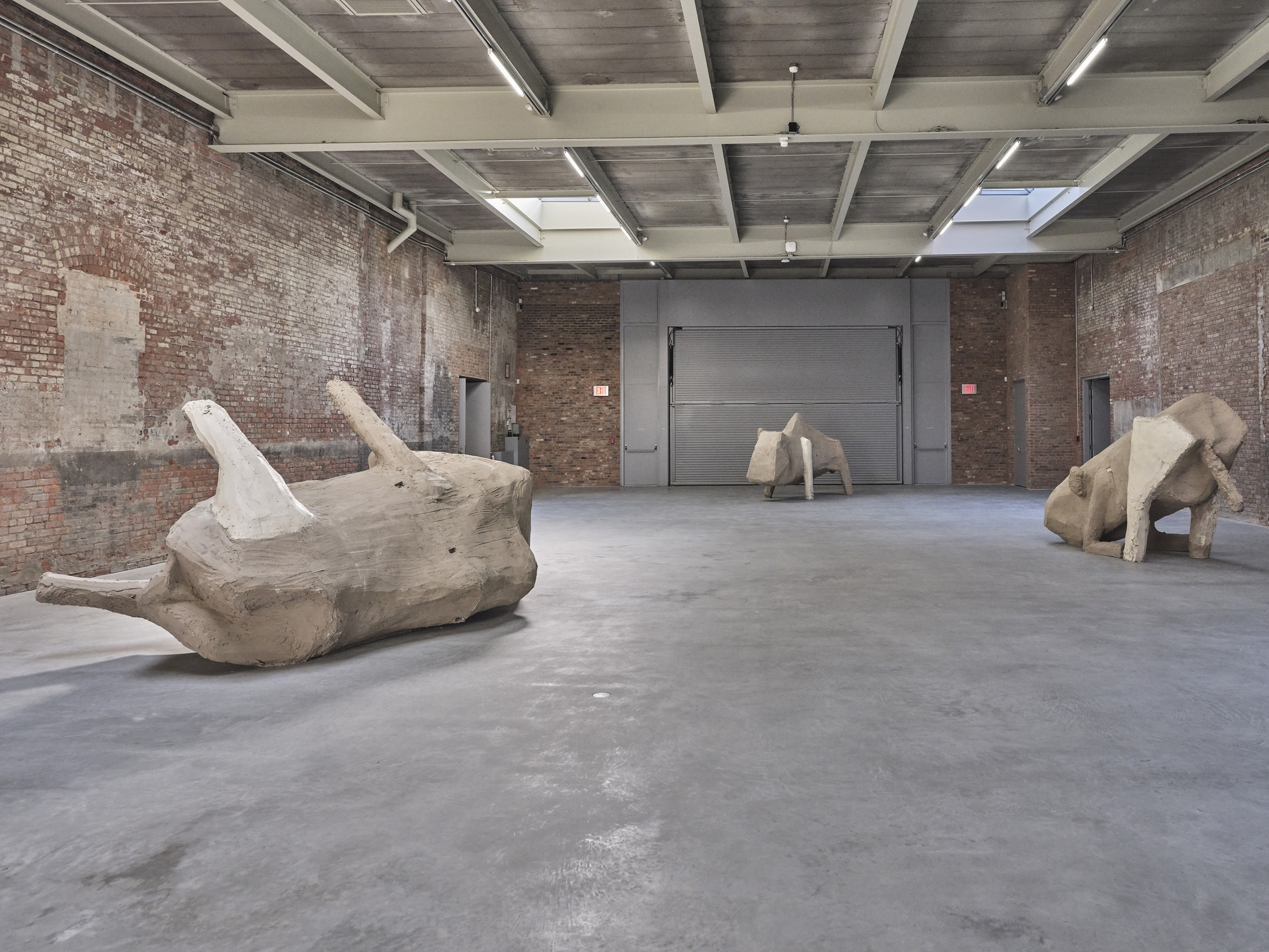 Dia presents Duane Linklater: 12 + 2, an exhibition of new work by Duane Linklater addressing the theme of weathering. The exhibition takes the essential architecture of the teepee—12 poles in a circle plus two off-center—as its unit structure to encompass the galleries of Dia Chelsea in a set of relations. Sculptures of the North American buffalo rendered in the act of wallowing are distributed along the circle. Geological core samples, and reoccurring music and dance performances, mark and inflect the two off-centered positions with spiritual meaning.